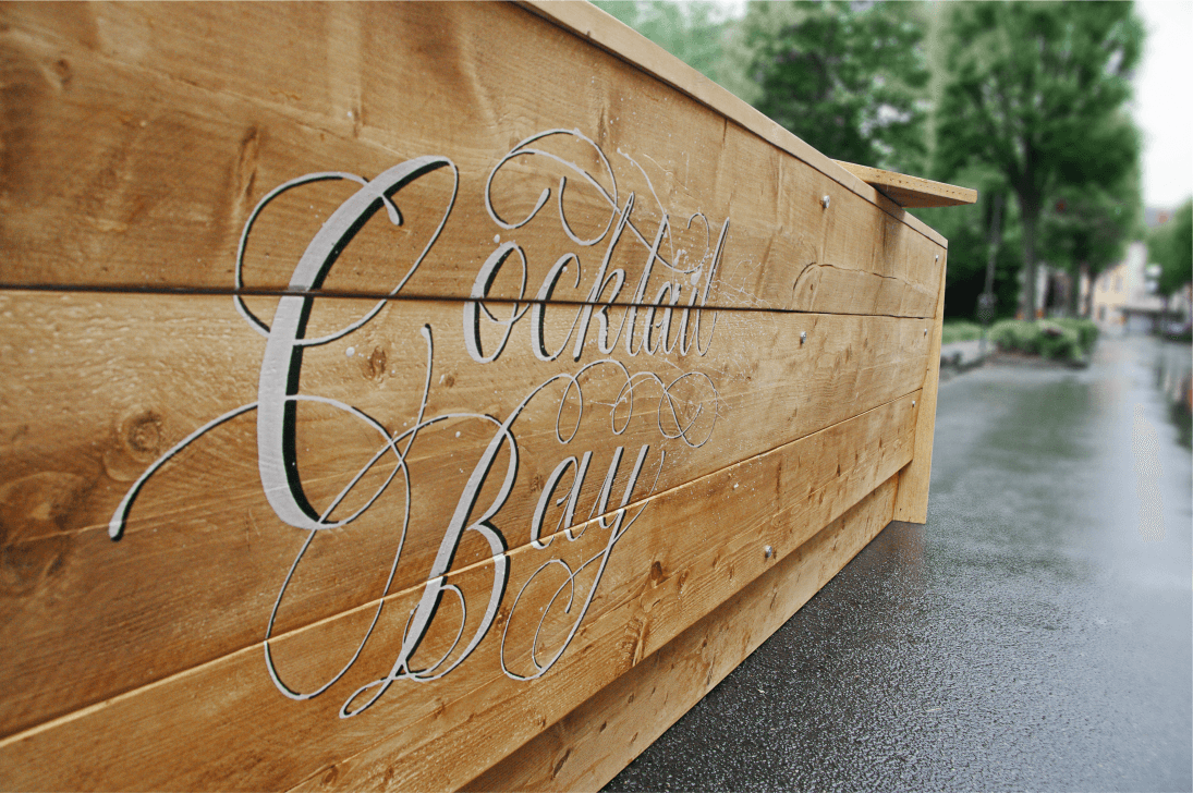 Cocktailbay: Mobile Cocktailbar... Gesamtkonzept vom Logo über flaschen; Getränkeauswahl bis zur Bar